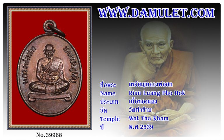 เหรียญหลวงพ่อฮก วัดท่าข้าม พ.ศ.2539