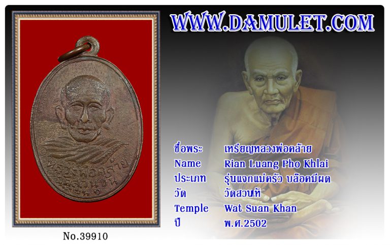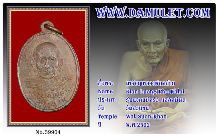 เหรียญหลวงพ่อคล้าย วัดสวนขัน พ.ศ.2502