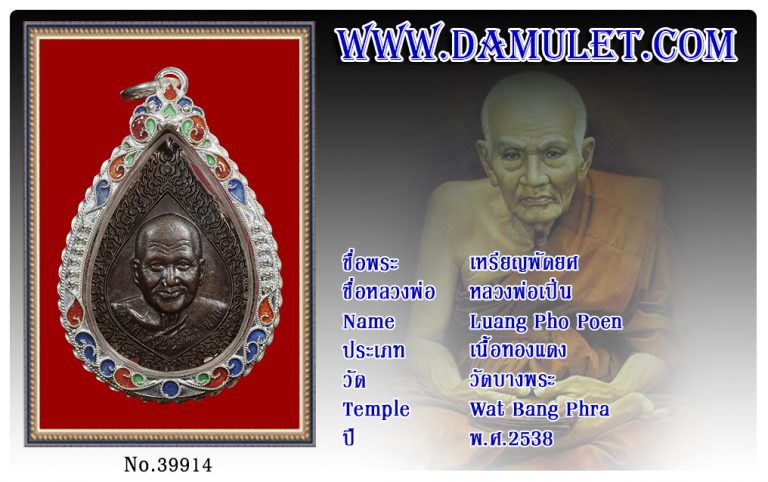 เหรียญพัดยศ หลวงพ่อเปิ่น วัดบางพระ พ.ศ.2538