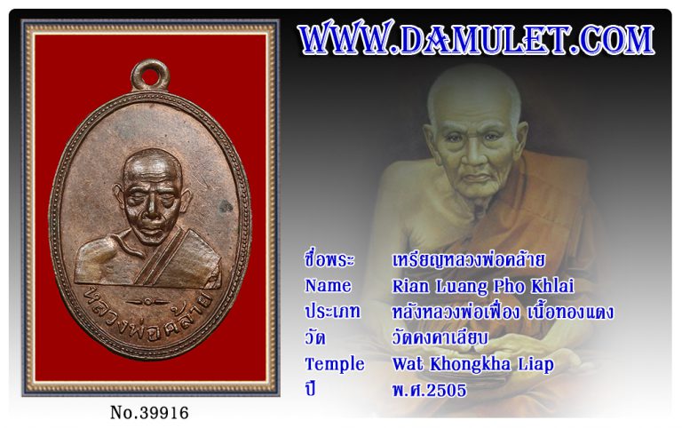 เหรียญหลวงพ่อคล้าย วัดคงคาเลียบ พ.ศ.2505