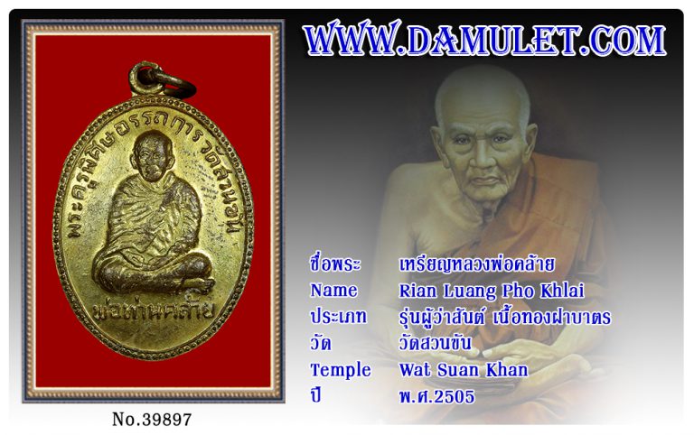 เหรียญหลวงพ่อคล้าย วัดสวนขัน พ.ศ.2505