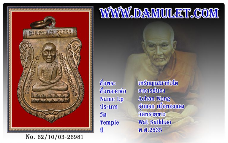 เหรียญเสมาหัวโต อาจารย์นอง วัดทรายขาว พ.ศ.2535
