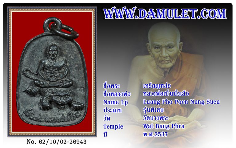 เหรียญหล่อ หลวงพ่อเปิ่นนั่งเสือ วัดบางพระ พ.ศ.2537