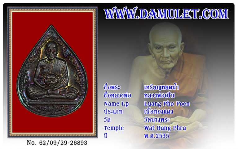 เหรียญหยดน้ำ หลวงพ่อเปิ่น วัดบางพระ พ.ศ.2535