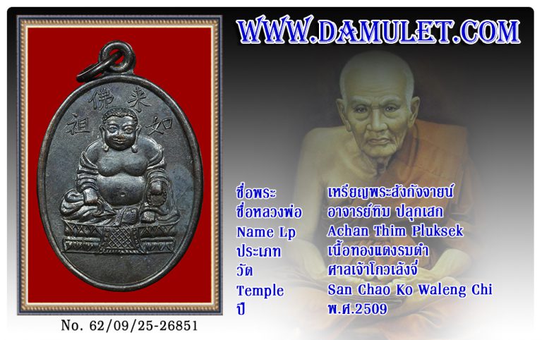 เหรียญพระสังกัจจายน์ อาจารย์ทิม ปลุกเสก ศาลเจ้าโกวเล้งจี่ พ.ศ.2509