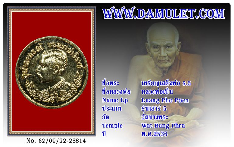 เหรียญเสด็จพ่อ ร.5 หลวงพ่อเปิ่น วัดบางพระ พ.ศ.2536