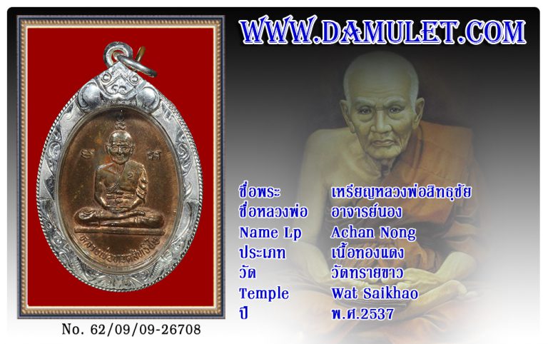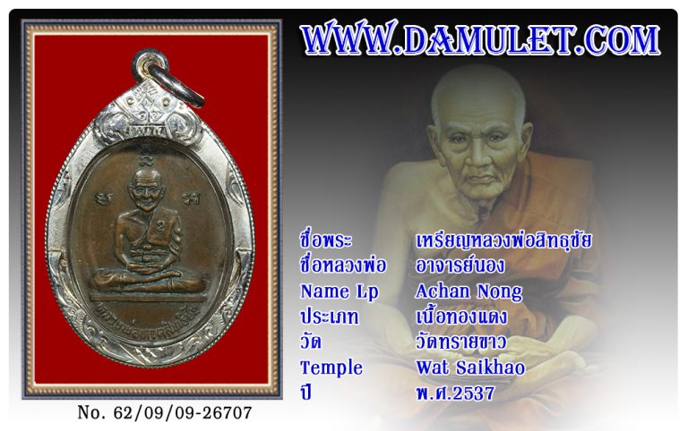 เหรียญหลวงพ่อสิทธฺชัย อาจารย์นอง วัดทรายขาว พ.ศ.2537