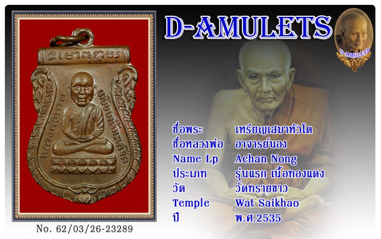 เหรียญเสมาหัวโต อาจารย์นอง วัดทรายขาว พ.ศ.2535