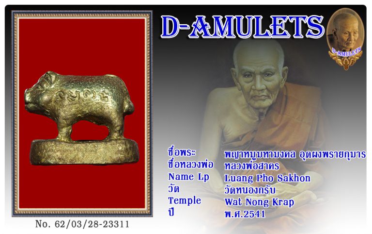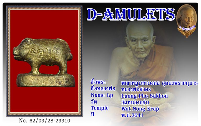 พญาหมูมหามงคล อุดผงพรายกุมาร หลวงพ่อสาคร วัดหนองกรับ พ.ศ.2541