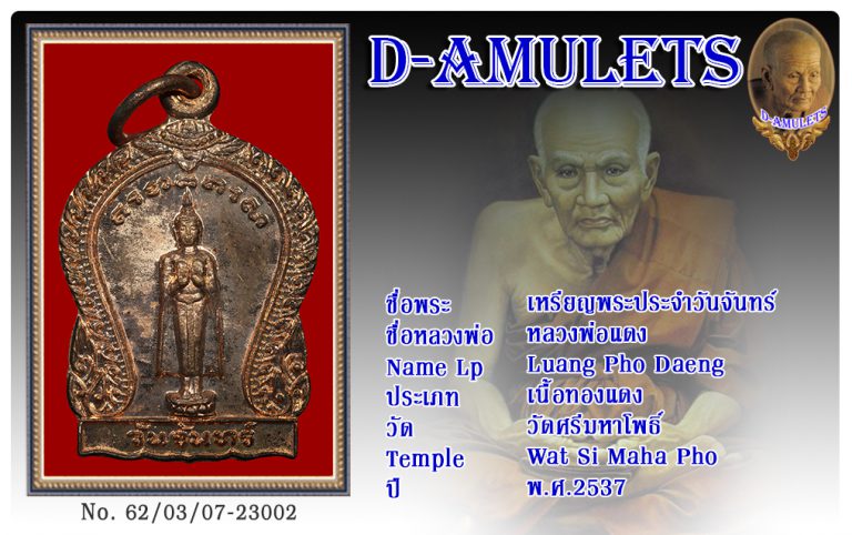 เหรียญพระประจำวันจันทร์ หลวงพ่อแดง วัดศรีมหาโพธิ์ พ.ศ.2537